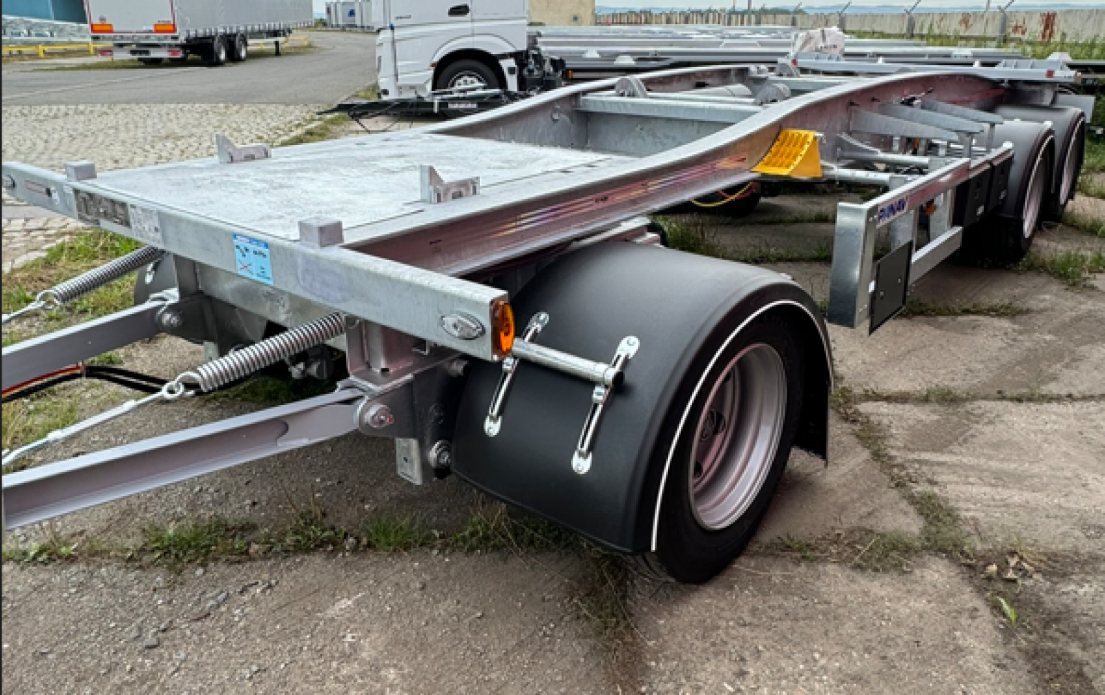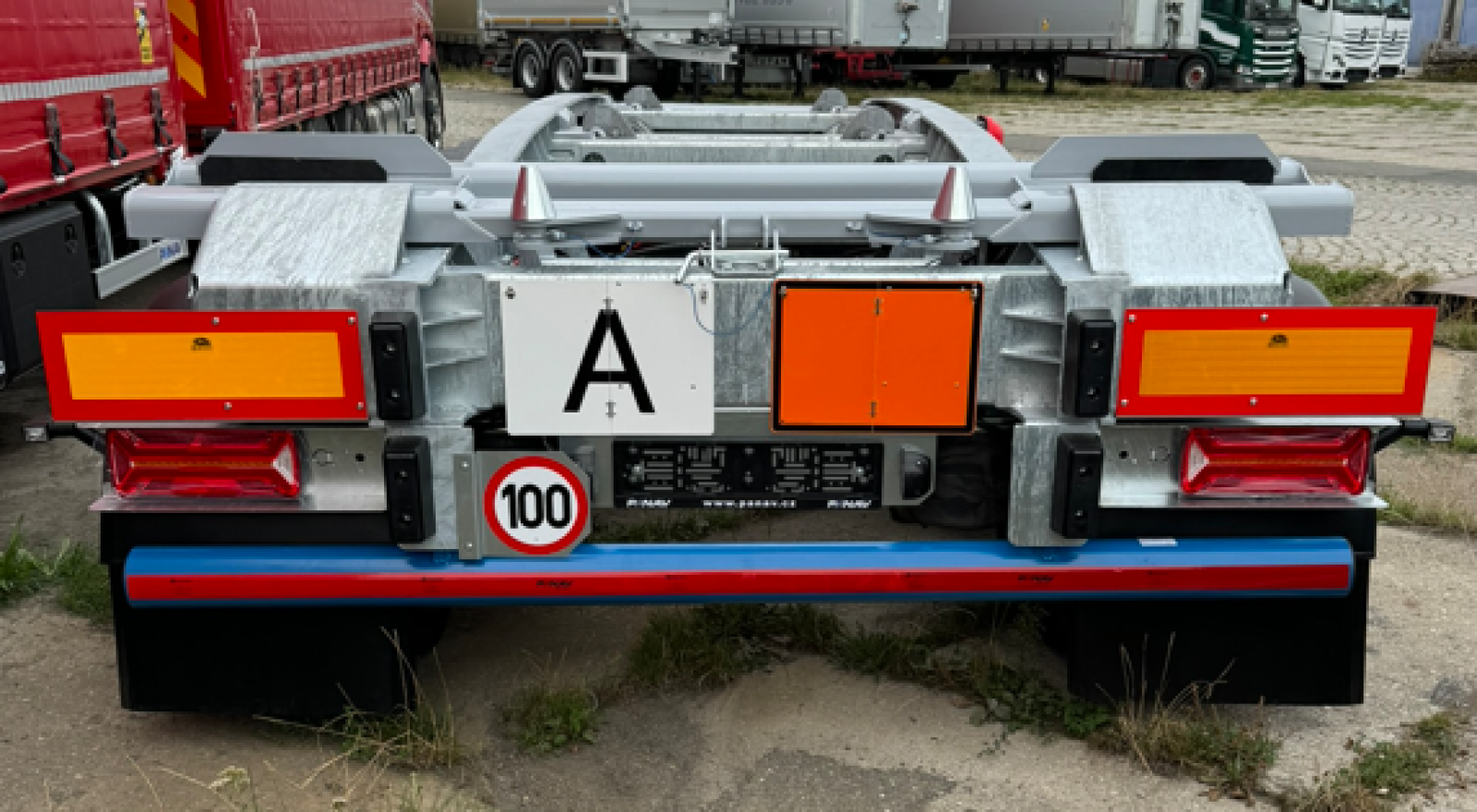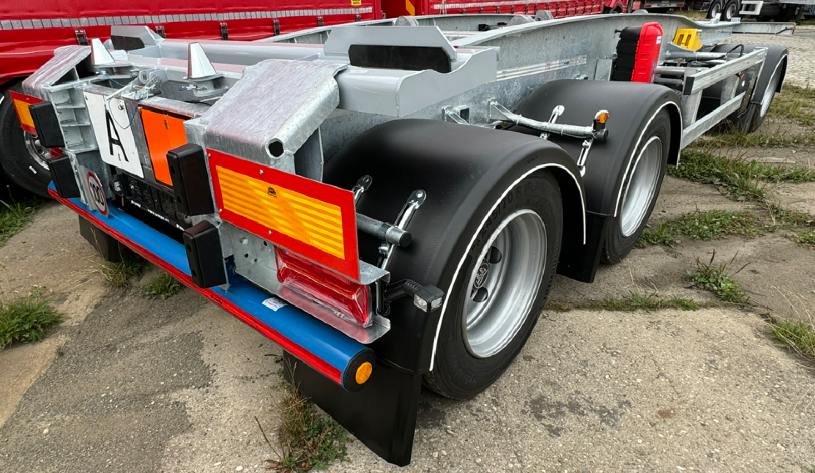 Steel ladder construction - hot-dip galvanized, steel side guards against undercuts, steel rear bumper, covering the trailer turntable with a cover plate to prevent dirt from falling in, rear rubber stops, reflective stripes of vehicle safety markings according to EHK 48 on the side in white and at the back in red