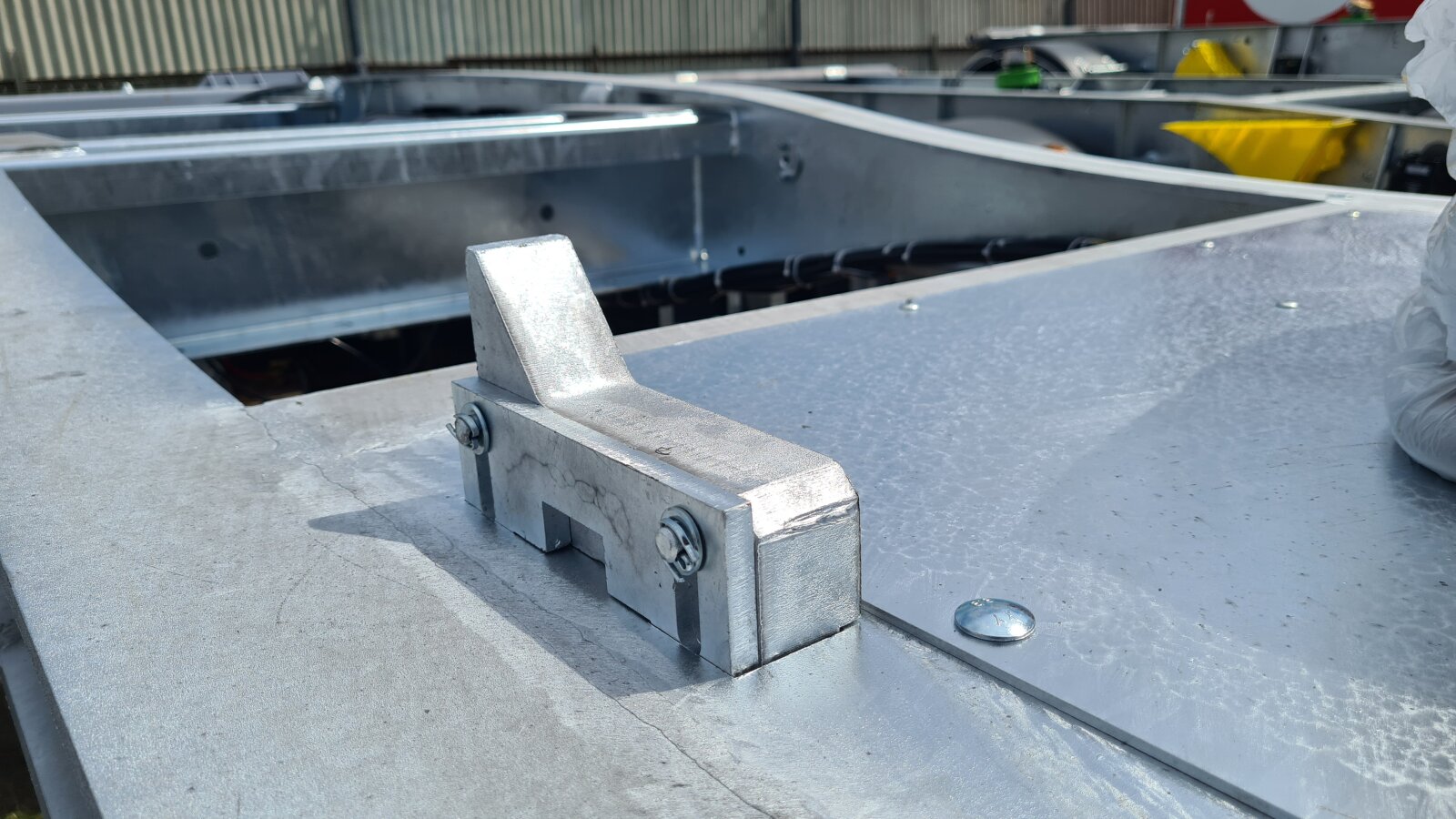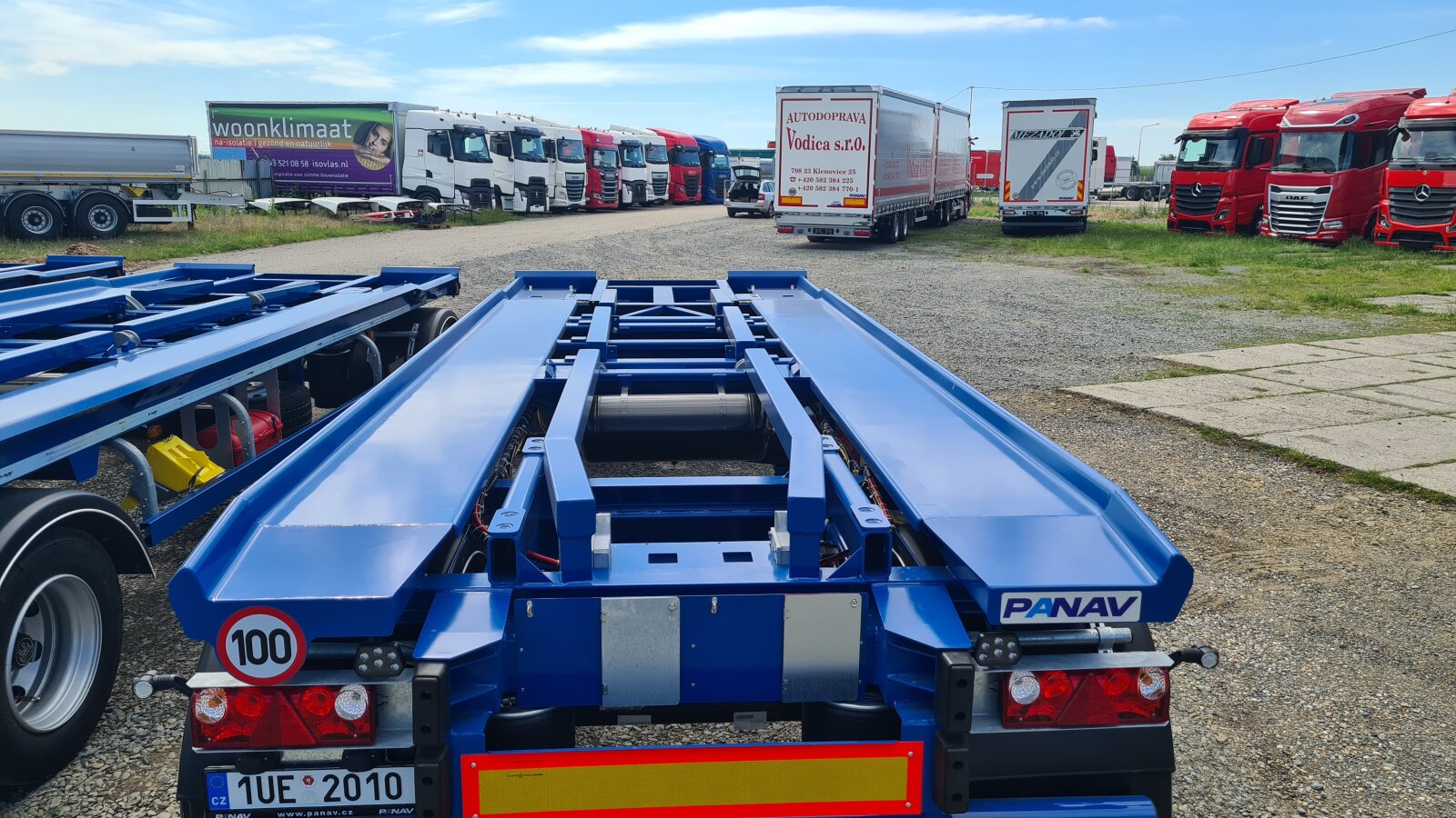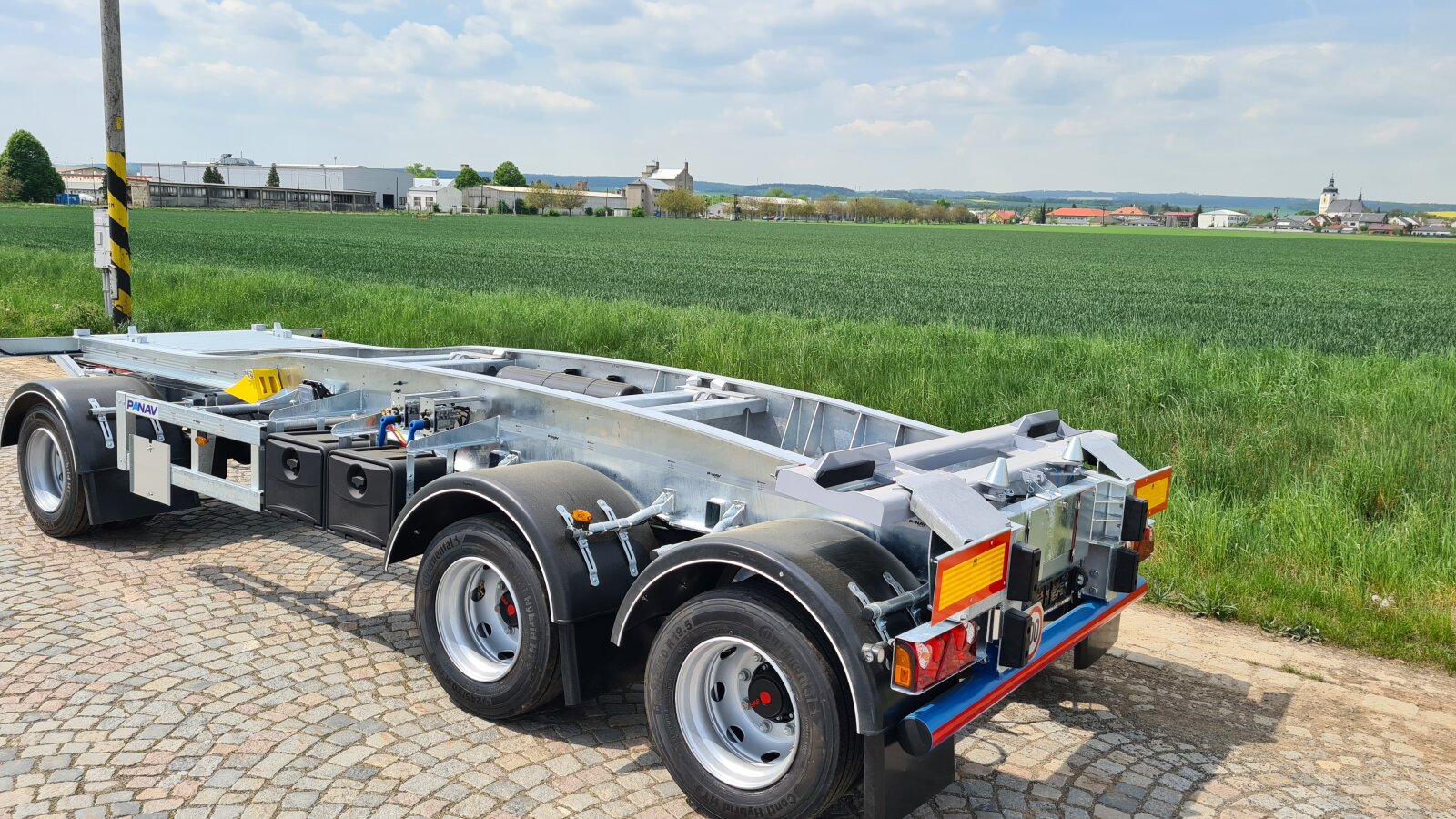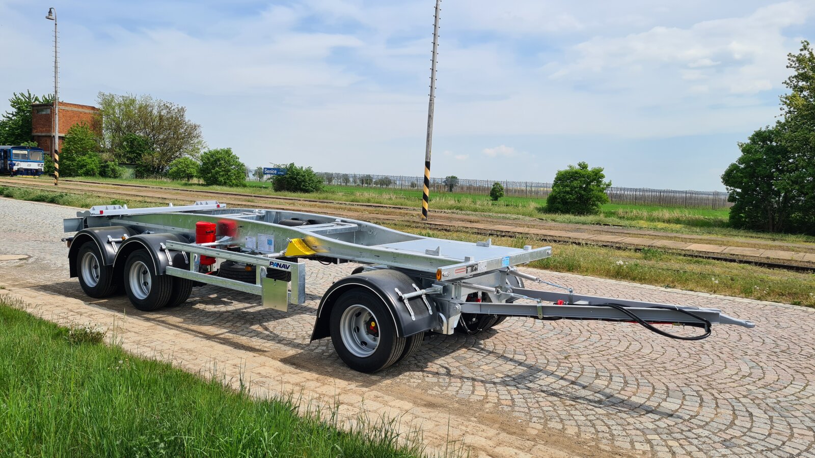 for loading rolling containers (DIN and MSTS) and bath containers, two frame concepts are available, with a running surface and with a trolley for storing container rollers, which travels along the trailer frame
