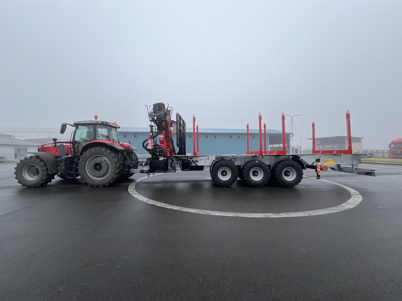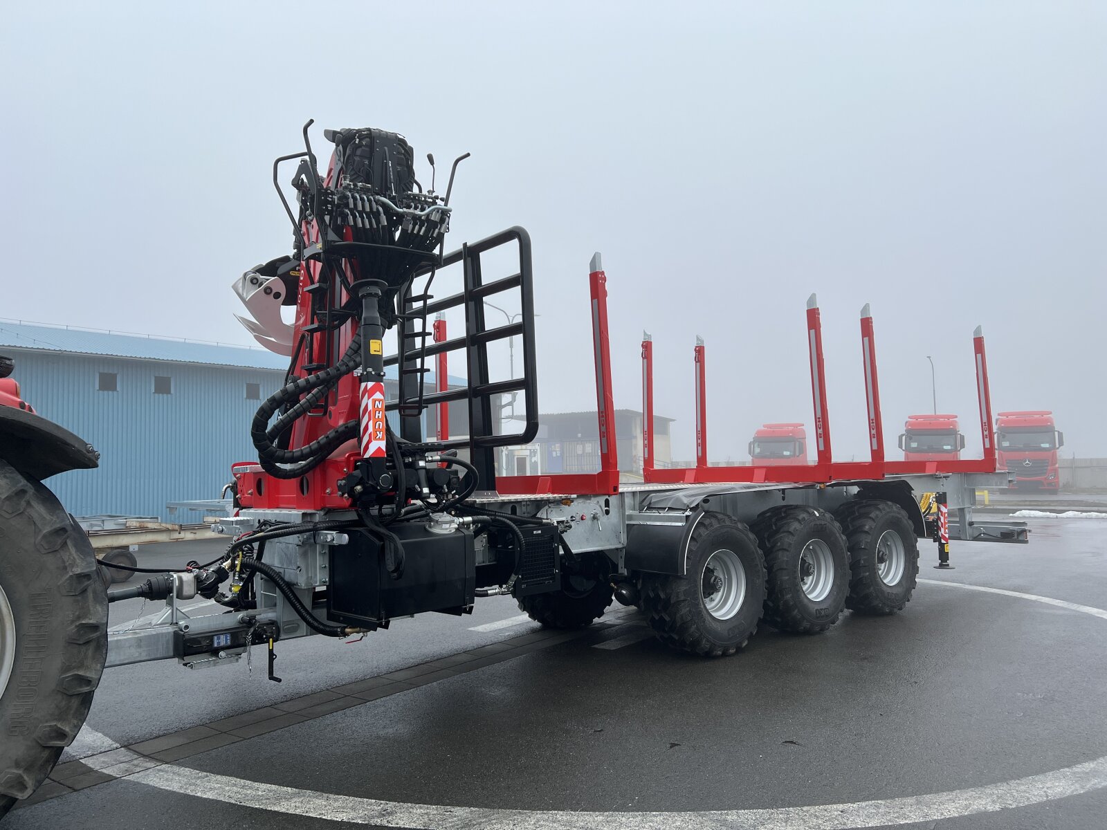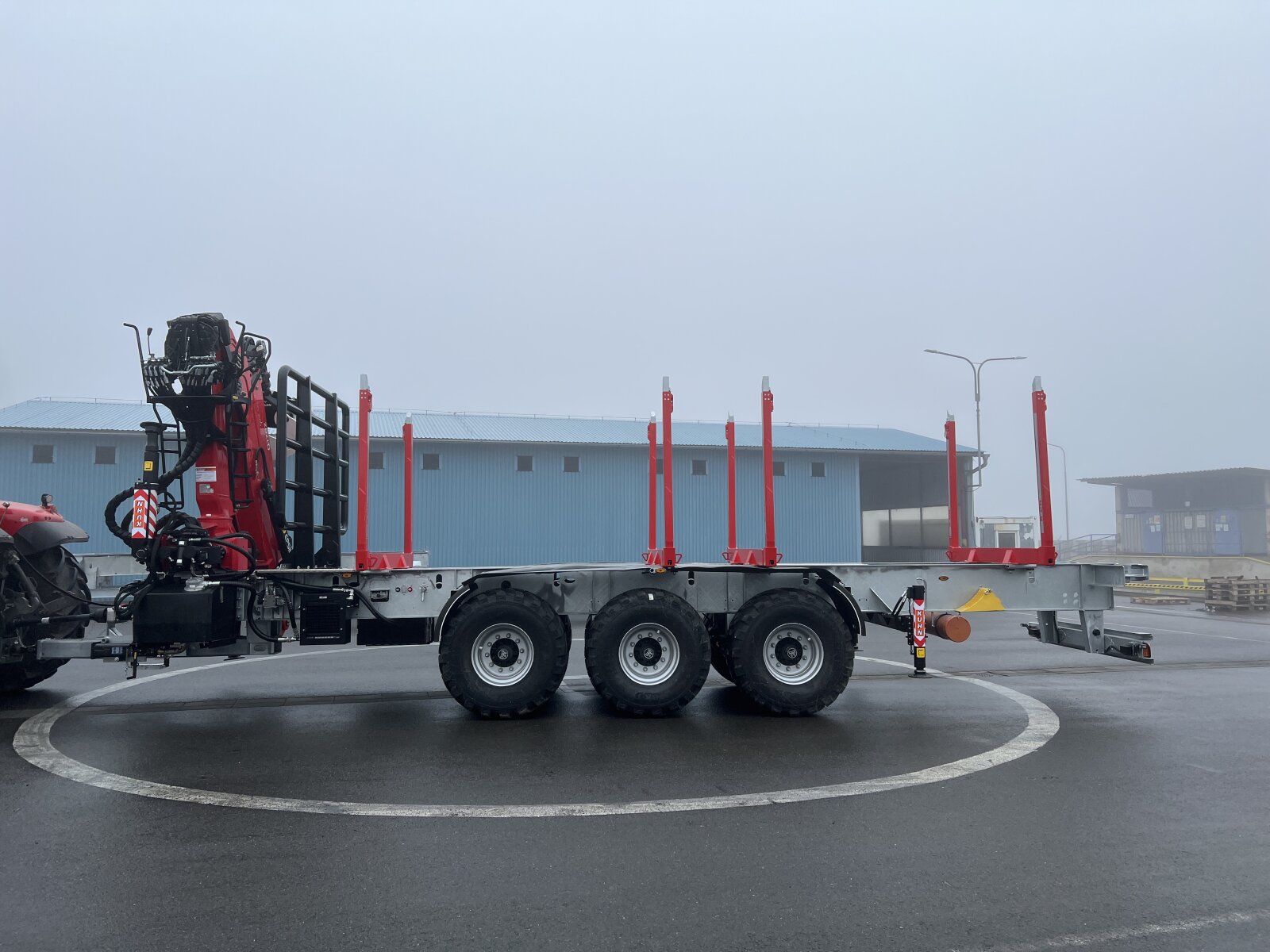 for example: on the basis of a robust and torsionally rigid chassis of a lowloader semi-trailer can be built a semi-trailer with a hydraulic arm at the rear with the ability to tgransport an ISO container with special tools, which varies according to the nature of work