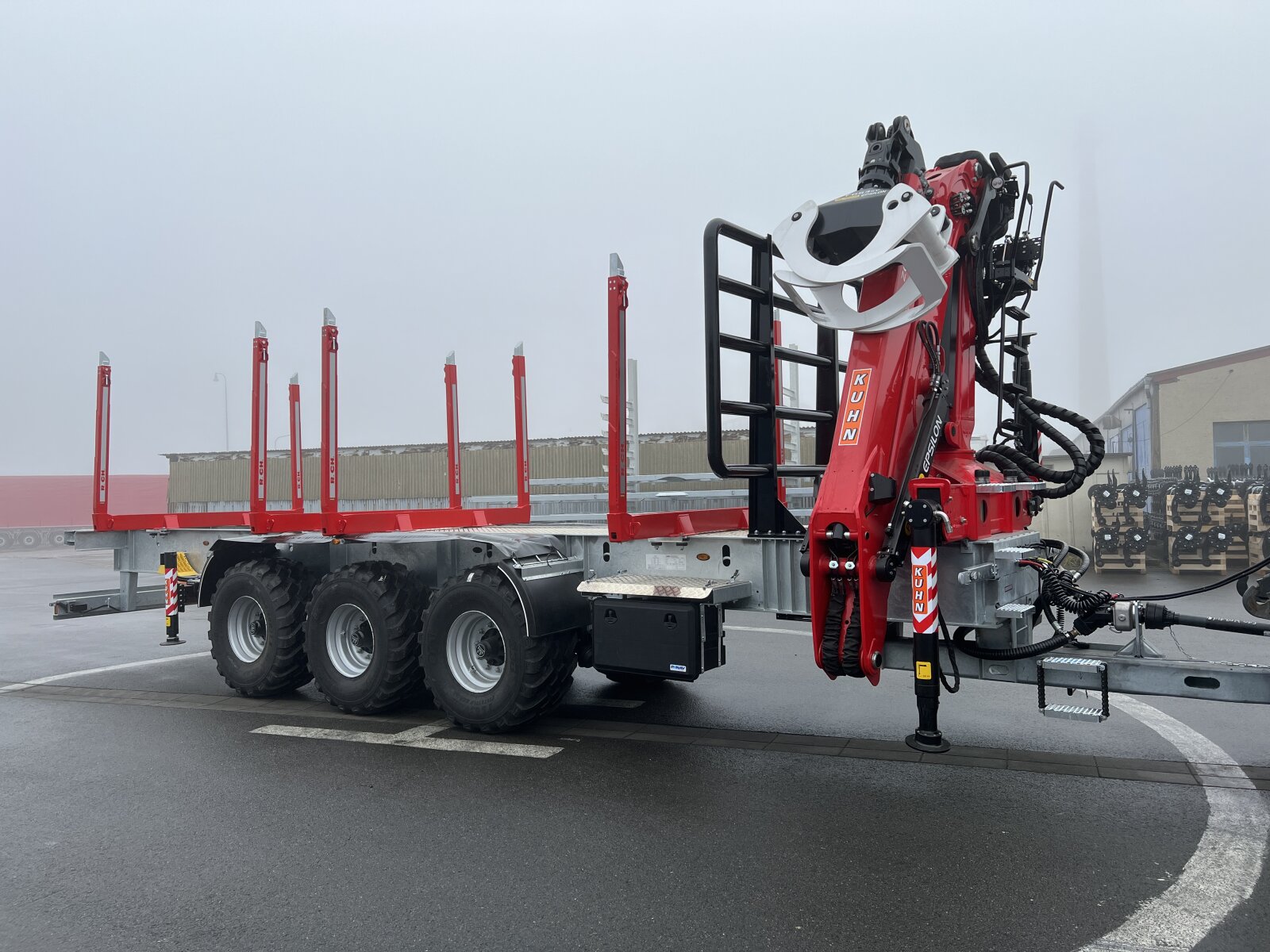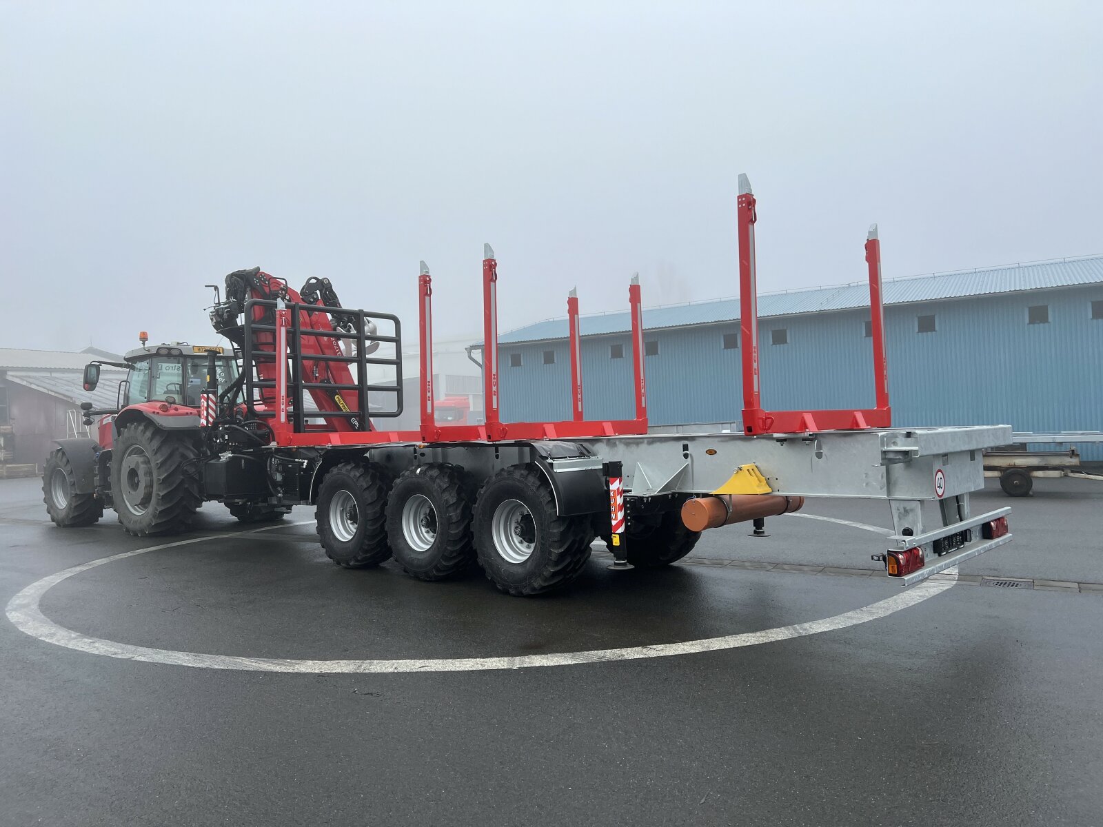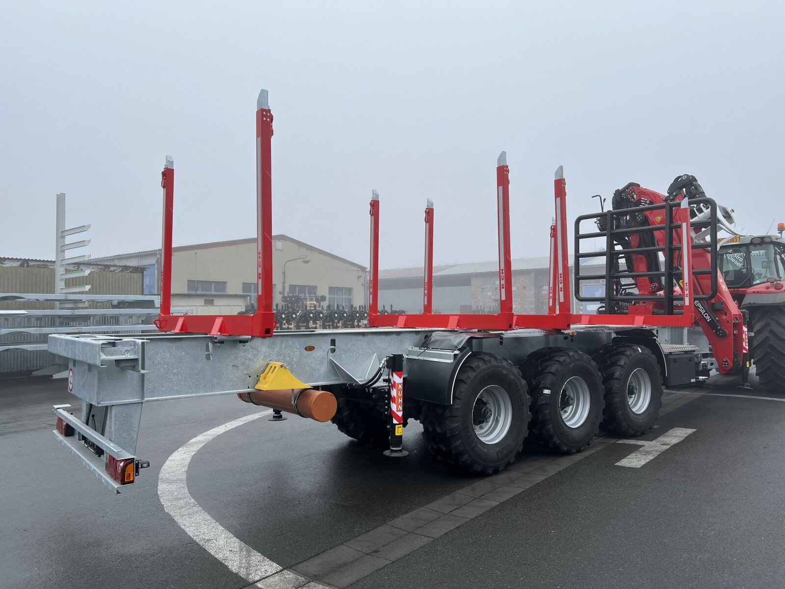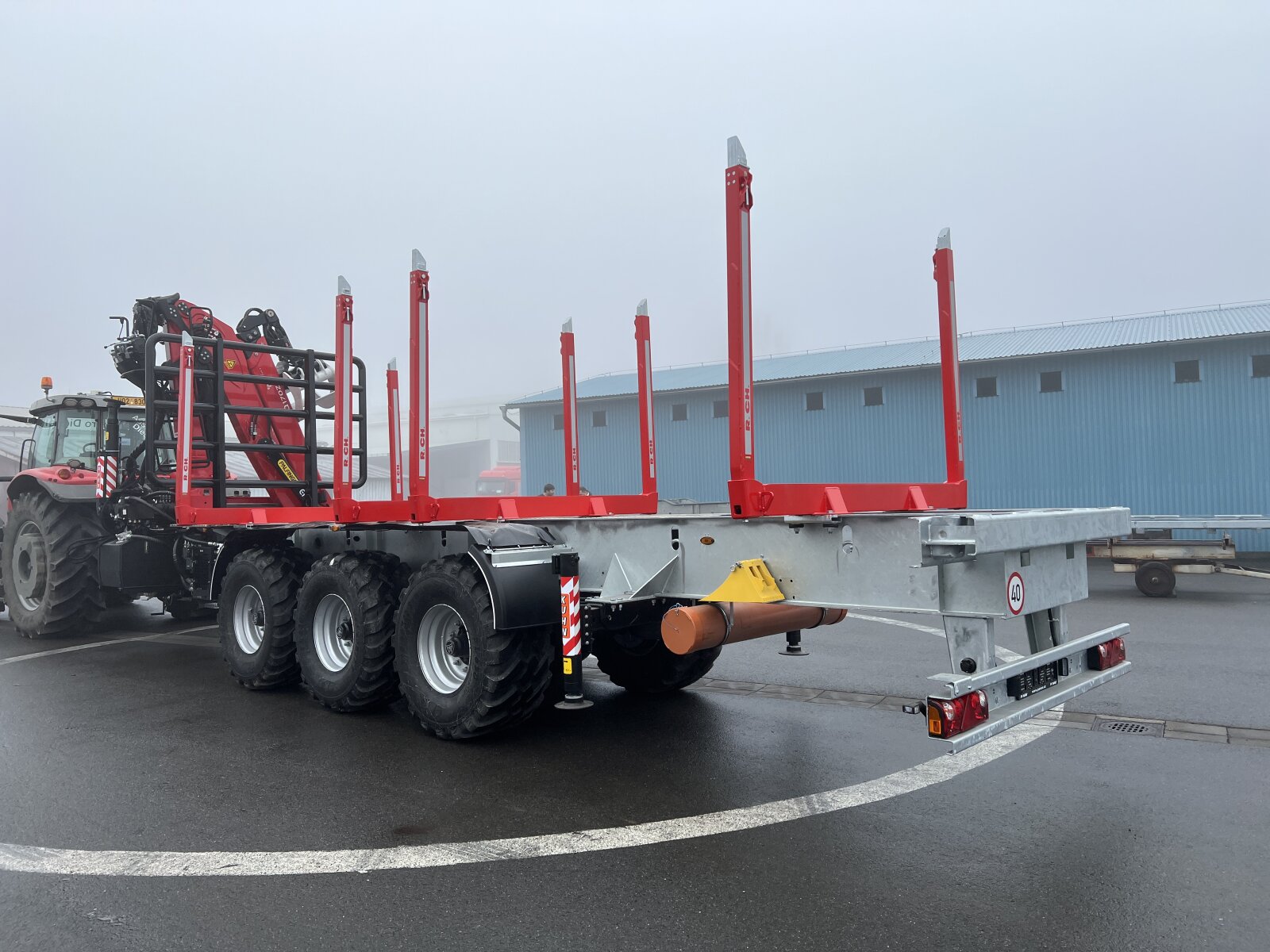 for example: on the basis of a robust and torsionally rigid chassis of a lowloader semi-trailer can be built a semi-trailer with a hydraulic arm at the rear with the ability to tgransport an ISO container with special tools, which varies according to the nature of work