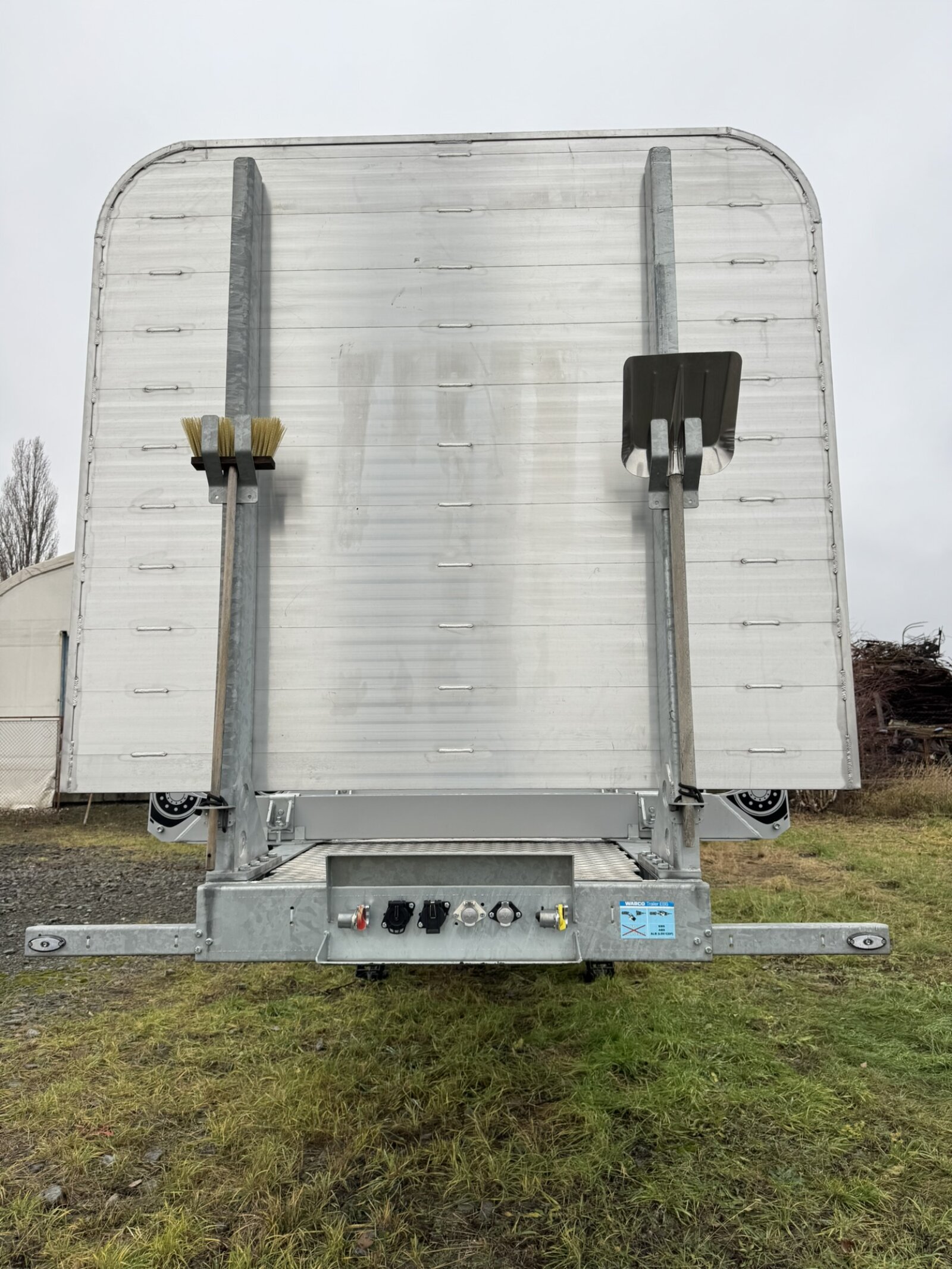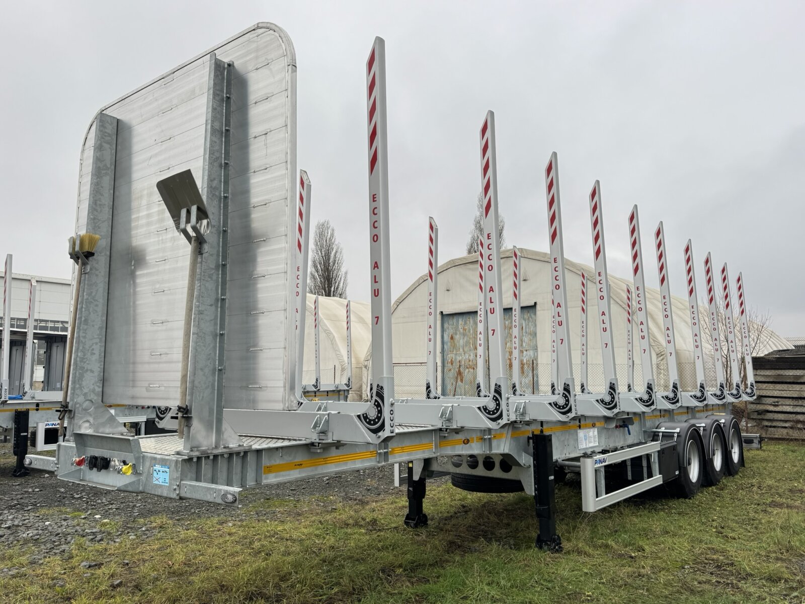 Steel, hot-dip galvanized, front parking feet, replaceable JOST 2", suspension pin, 8 pairs of lashing strap holders, 2x rear rescue hook, aluminum rear bumper, aluminum side guards, covered space between the side members, plastic fenders + antispray