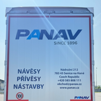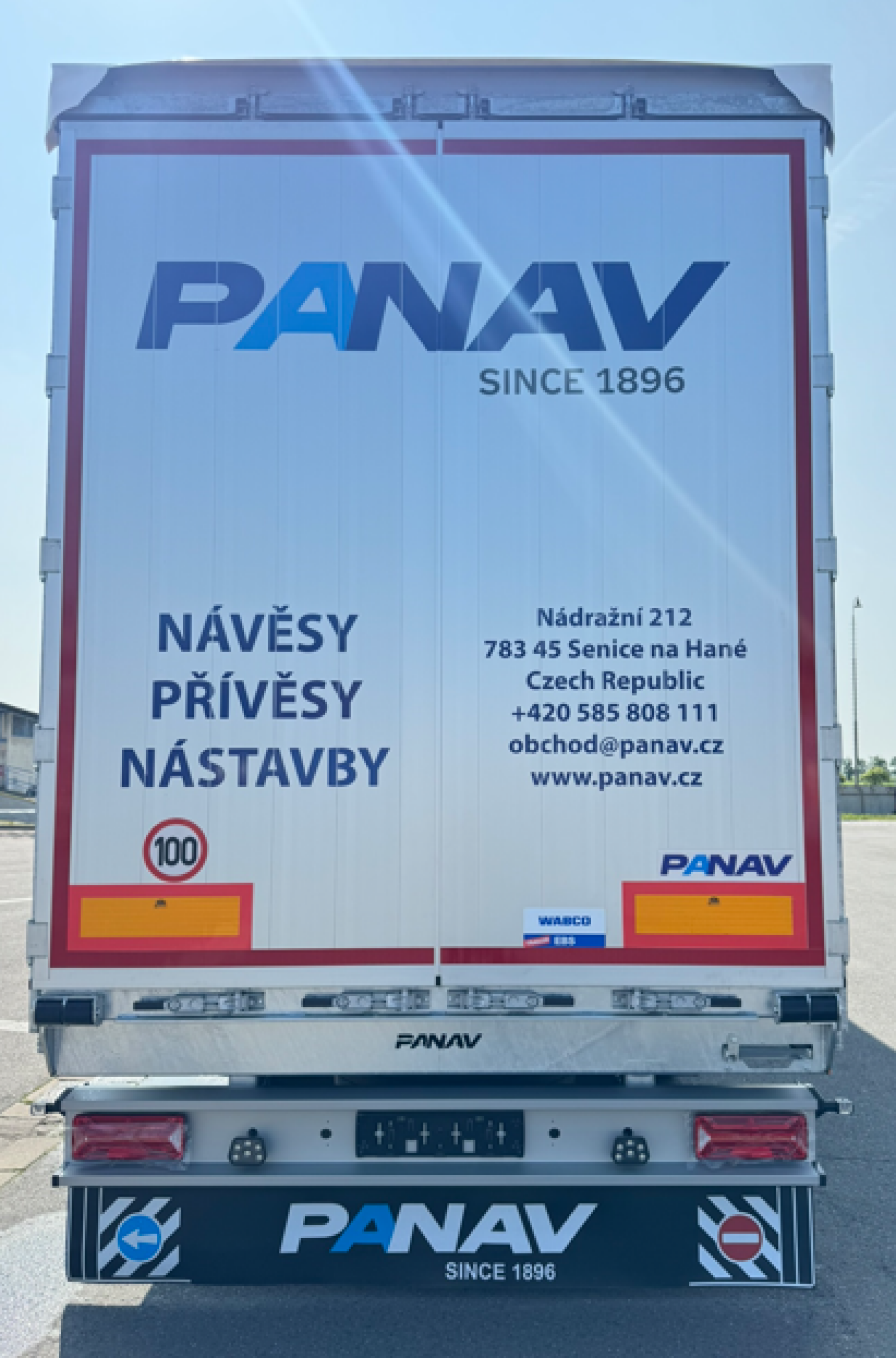 Two-hose air-pressure brake equipped with automatic load regulator, lifting/lowering of the loading area (Colas), 2 pcs of clutch heads (filling and control), design according to EHK 13.11, EBS, RSS brand WABCO, smartboard, TELEMATICS PANAV tire pressure monitoring