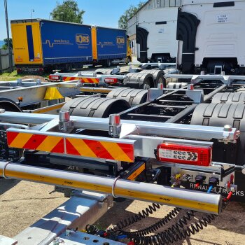 w razie konieczności zwiększenia zakresu wysokości załadunku ram nośnych nadwozi, podwozia można wyposażyć w hydrauliczny system synchronicznego podnoszenia elementów narożnych celem zamocowania nadwozi