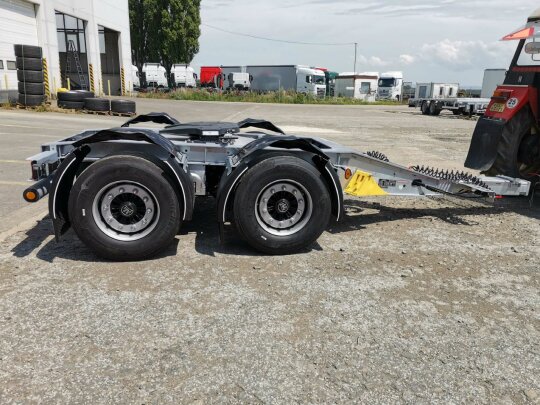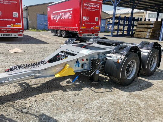 Evžen na pierwszy rzut oka wygląda jak zwykła naczepa ciężarówki, jego niestandardowe cechy ujawniają się dopiero po rozłożeniu prowadnic bocznych. Rzut naczepy, która po drodze może się poruszać przy masie całkowitej do 25 ton, z konwencjonalnych 2,5 metra rozszerza się do ponad czterech metrów, a z zamontowanymi schodkami Evžen osiąga niemal pięć metrów oraz długość przekraczającą szesnaście metrów.