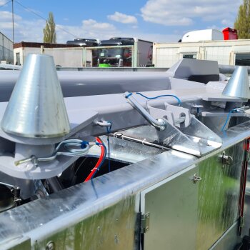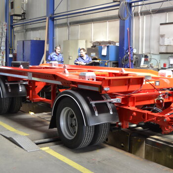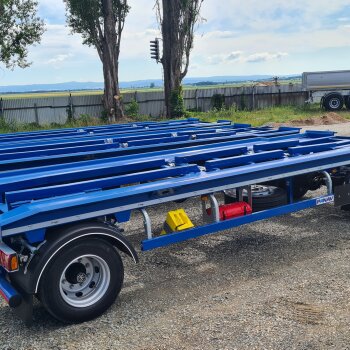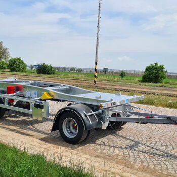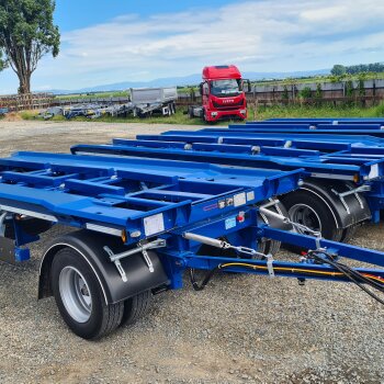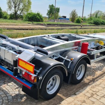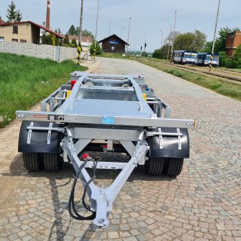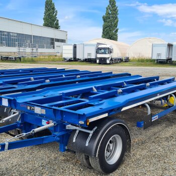 do załadunku kontenerów rolkowych (DIN i MSTS) oraz kontenerów wannowych dostępne są dwie koncepcje ram z powierzchnią przesuwu i z wózkiem do ułożenia rolek kontenera, które przesuwają się po ramie przyczepy