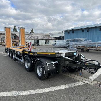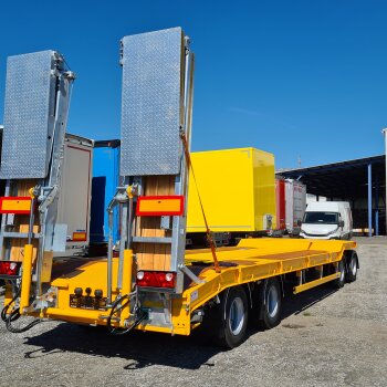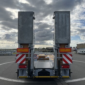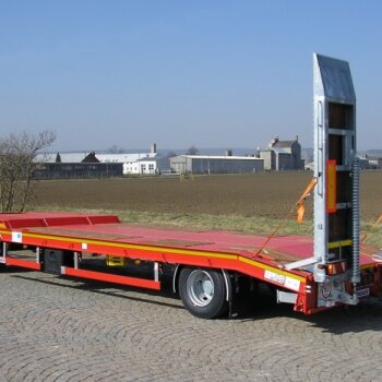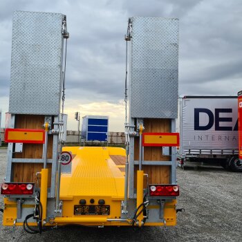 wytrzymała konstrukcja ramy do sprzętu kołowego i gąsienicowego oraz możliwość hydraulicznego sterowania rampami są oczywistością