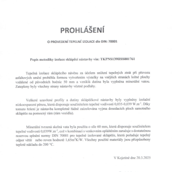 Insulation according to standard DIN 70001, complete thermal insulation - mineral wool 30 kg/m3, thickness of at least 50 mm according to the standard (front and rear face = 50 mm, sides and floor = 70 mm), surface - stainless steel 0,8 mm
