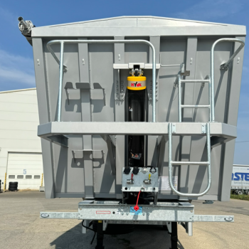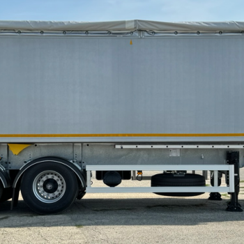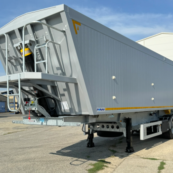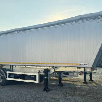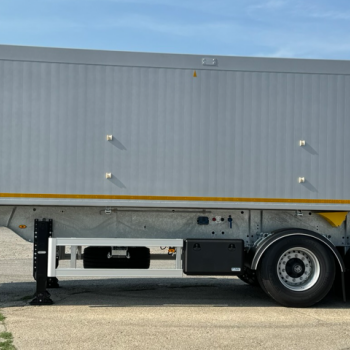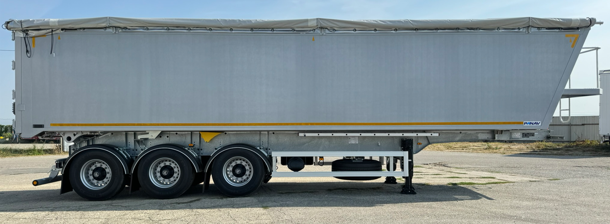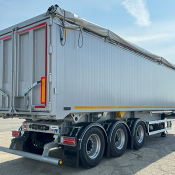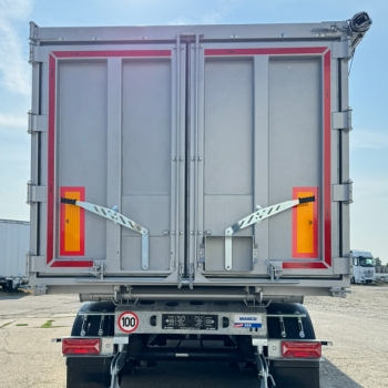 All-aluminum body with a volume of 50 m3, swinging rear front + double-wing doors (1/2-1/2), dump window (2x), floor made of aluminum sheet 7/10 thick is reinforced "U" profile, side walls welded from closed profiles 30 mm, inner wall 3 mm thick, sloping from end, tarpaulin on the side with a service bridge, 3 x truss + 3 x tension chain, extension for the handle to the loading window