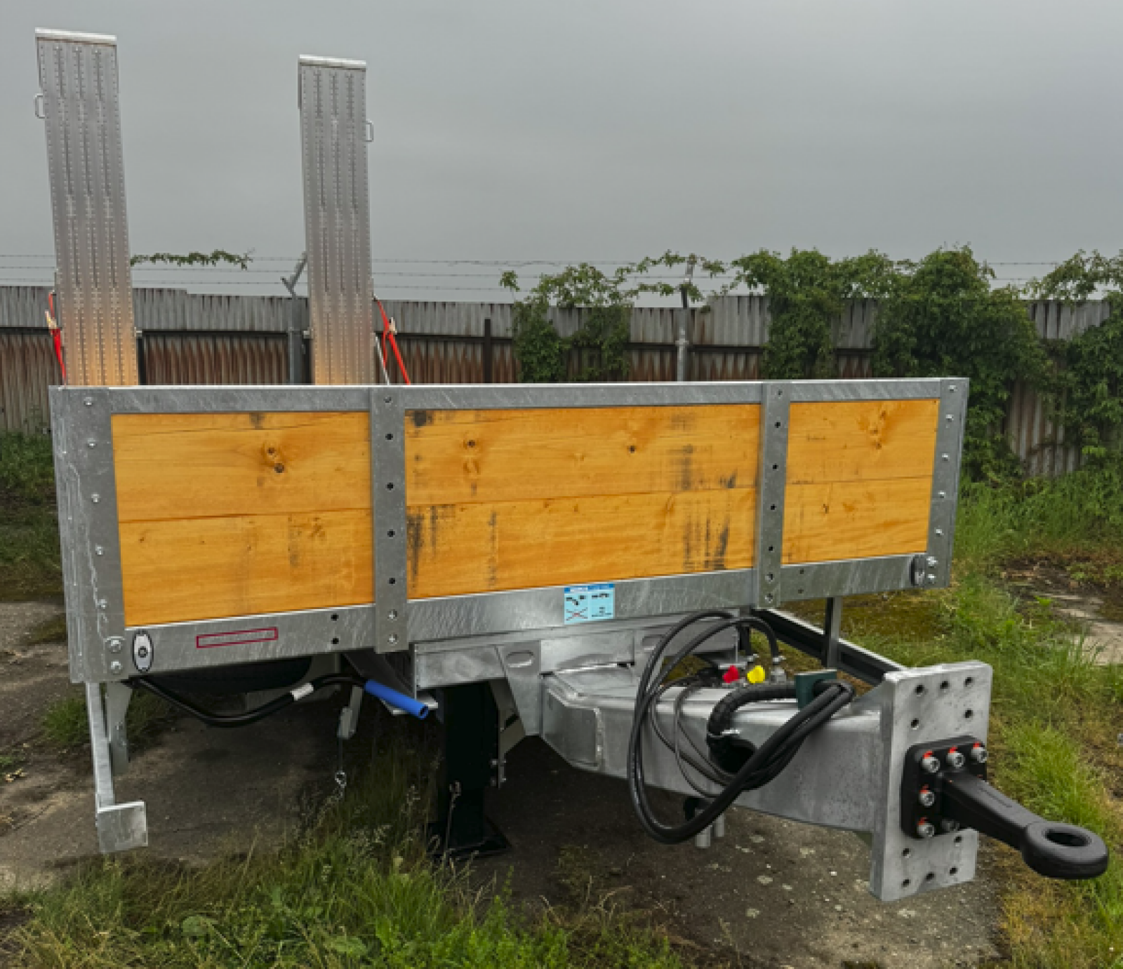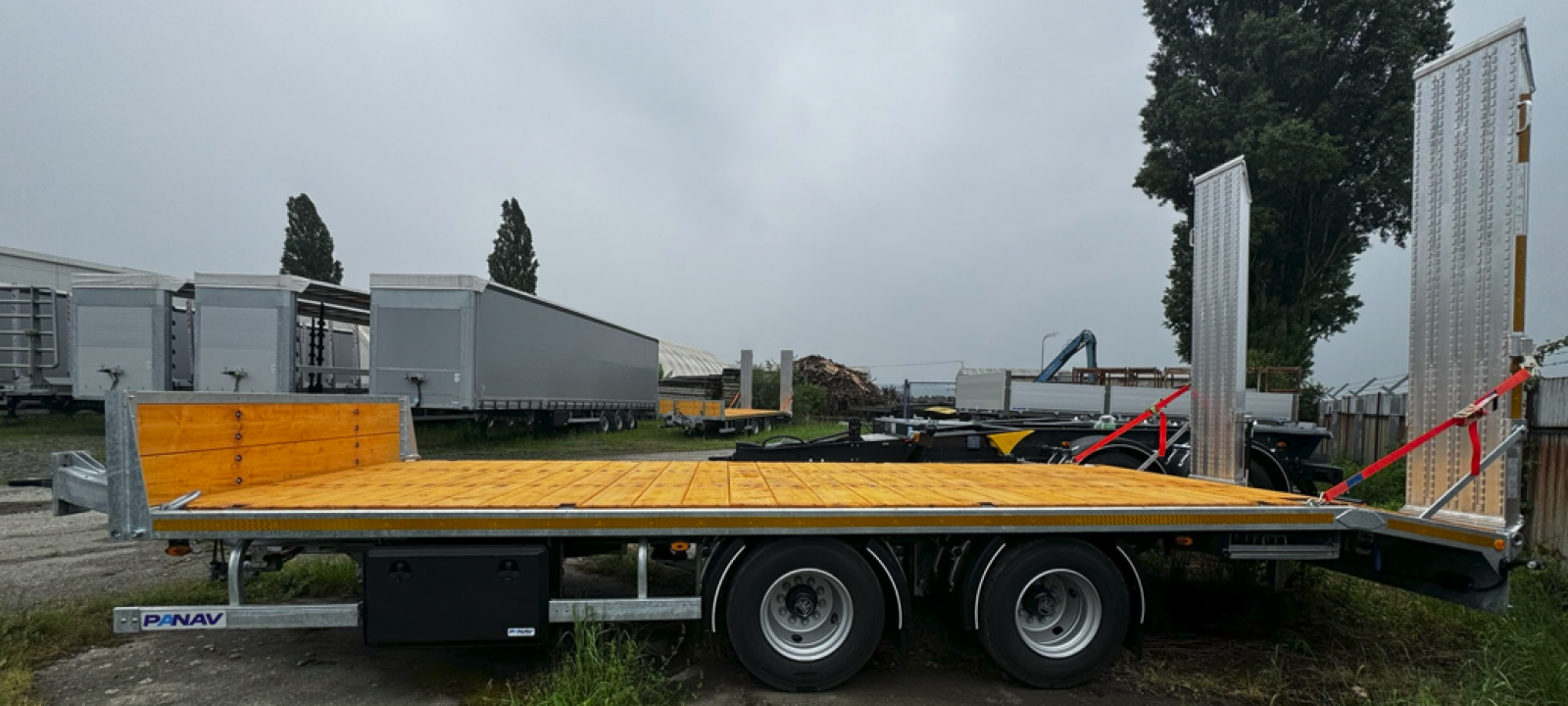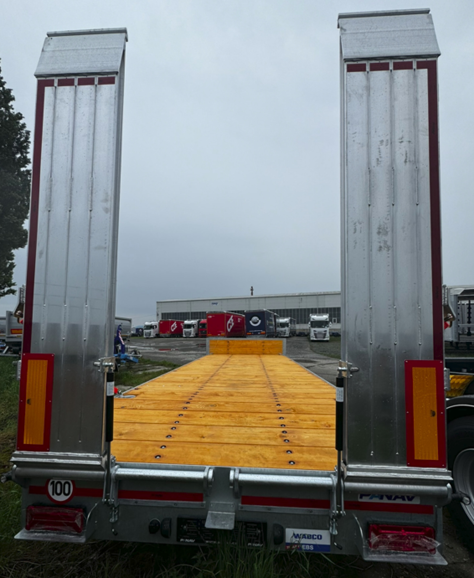 2 ks jednodílné Al nájezdové rampy, mechanicky přestavitelné, stranově posuvné, v přepravní poloze fixované mechanicky