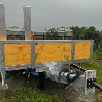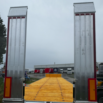 2 ks jednodílné Al nájezdové rampy, mechanicky přestavitelné, stranově posuvné, v přepravní poloze fixované mechanicky