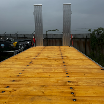 Dřevěné desky tl. 40 mm, po jednom páru ok vpředu a vzadu v rozích rovné části podlahy, 7 párů kotevních úchytů v okrajovém profilu