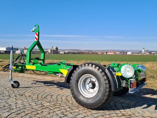 - Předností našich traktorových nosičů je nízká výška podvozku, díky které je úhel nakládání kontejneru malý a také velmi nízká provozní hmotnost, samozřejmě při zachování pevnosti podvozku