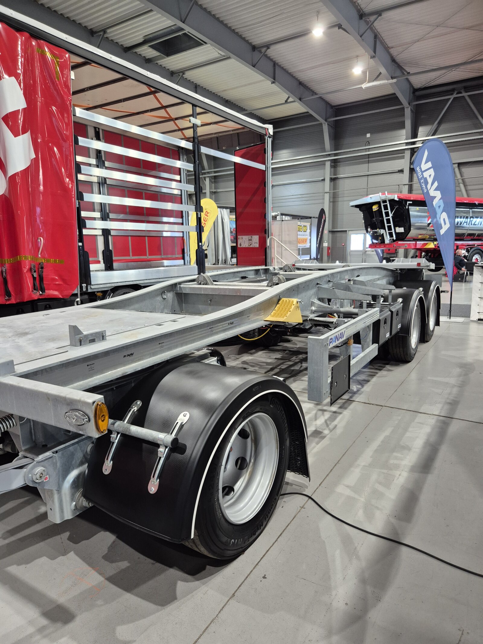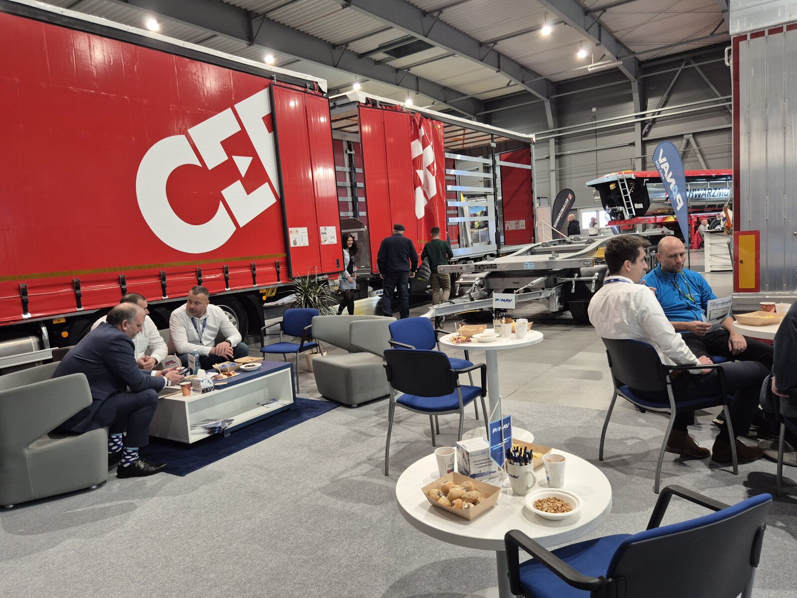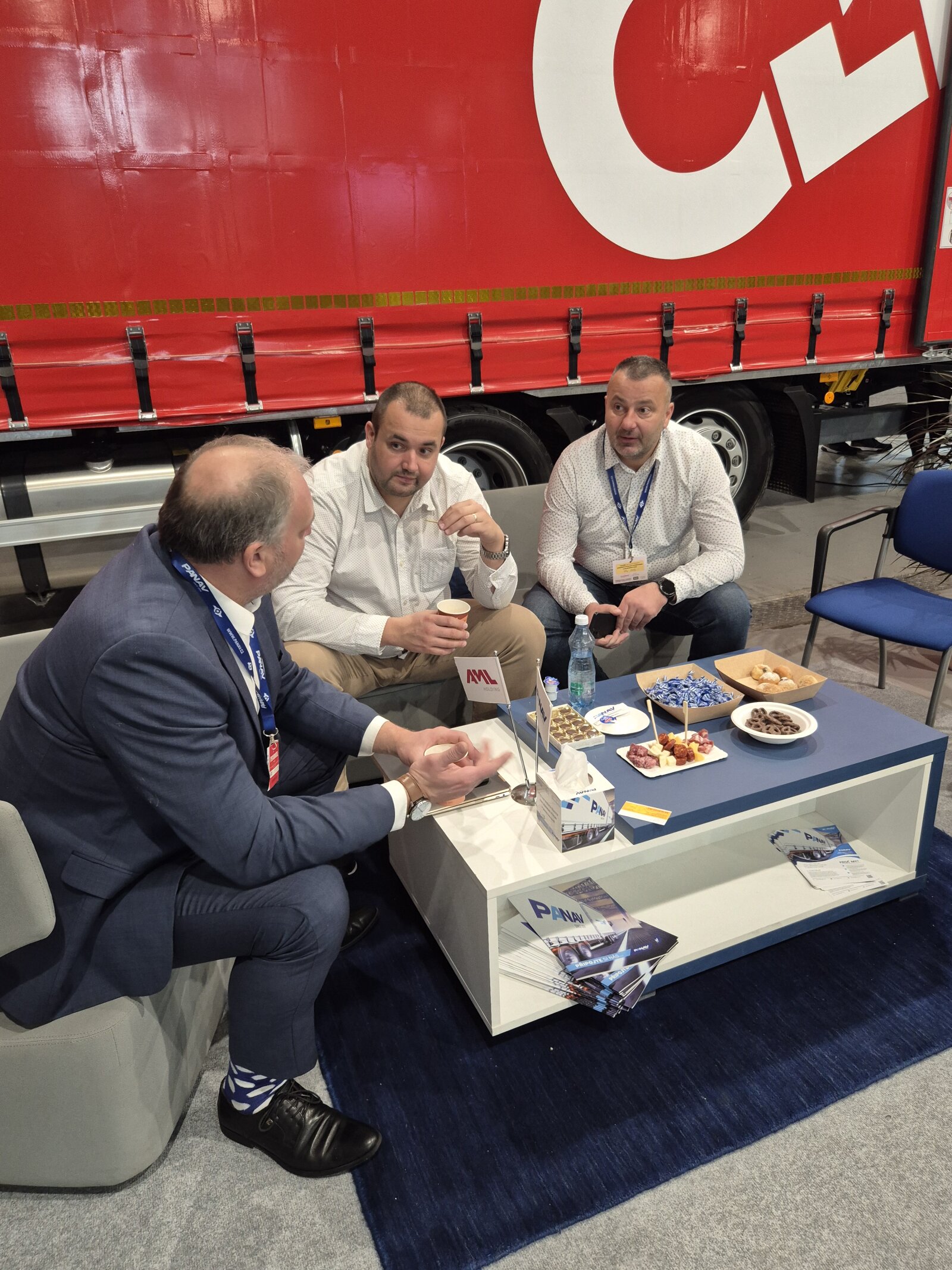 Příchozím jsme na našem stánku ukázali valníkovou velkoobjemovou soupravu ANV+TVK18M, tandemový sklápěcí přívěs TS318H, plošinový tandemový přívěs TP018L a kontejnerový přívěs PVC24M_ALOIS.