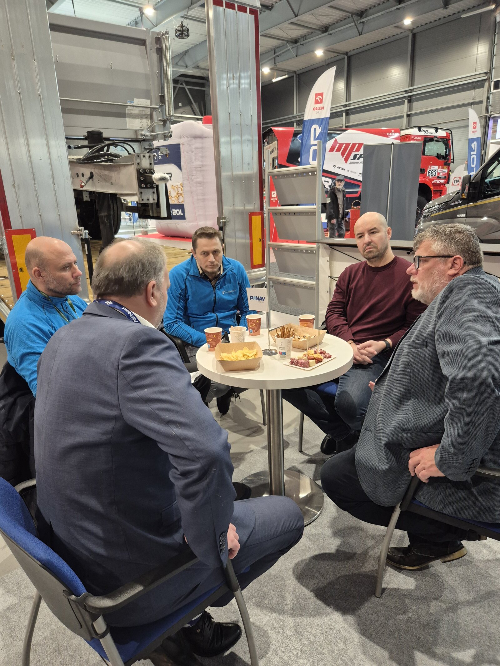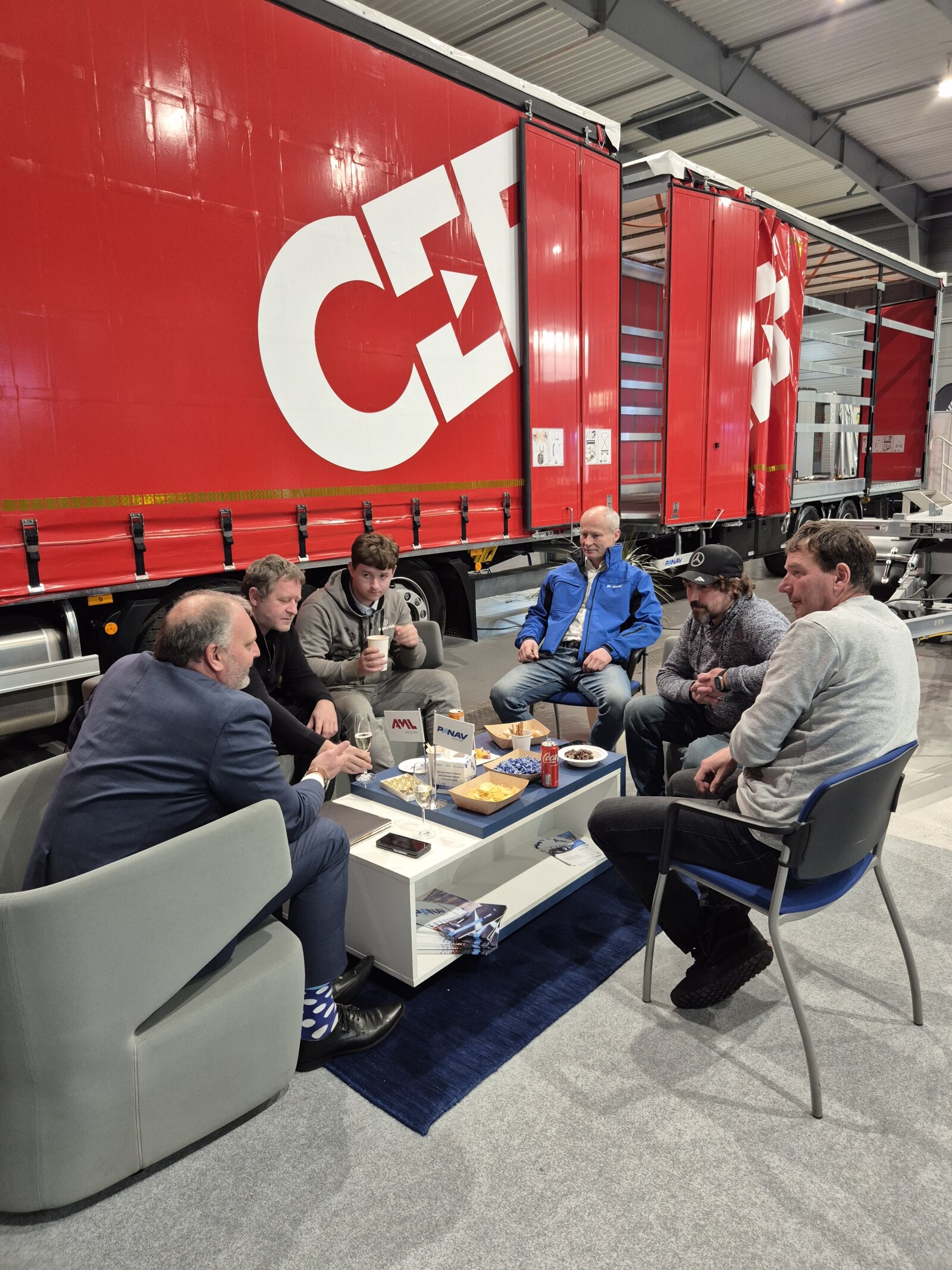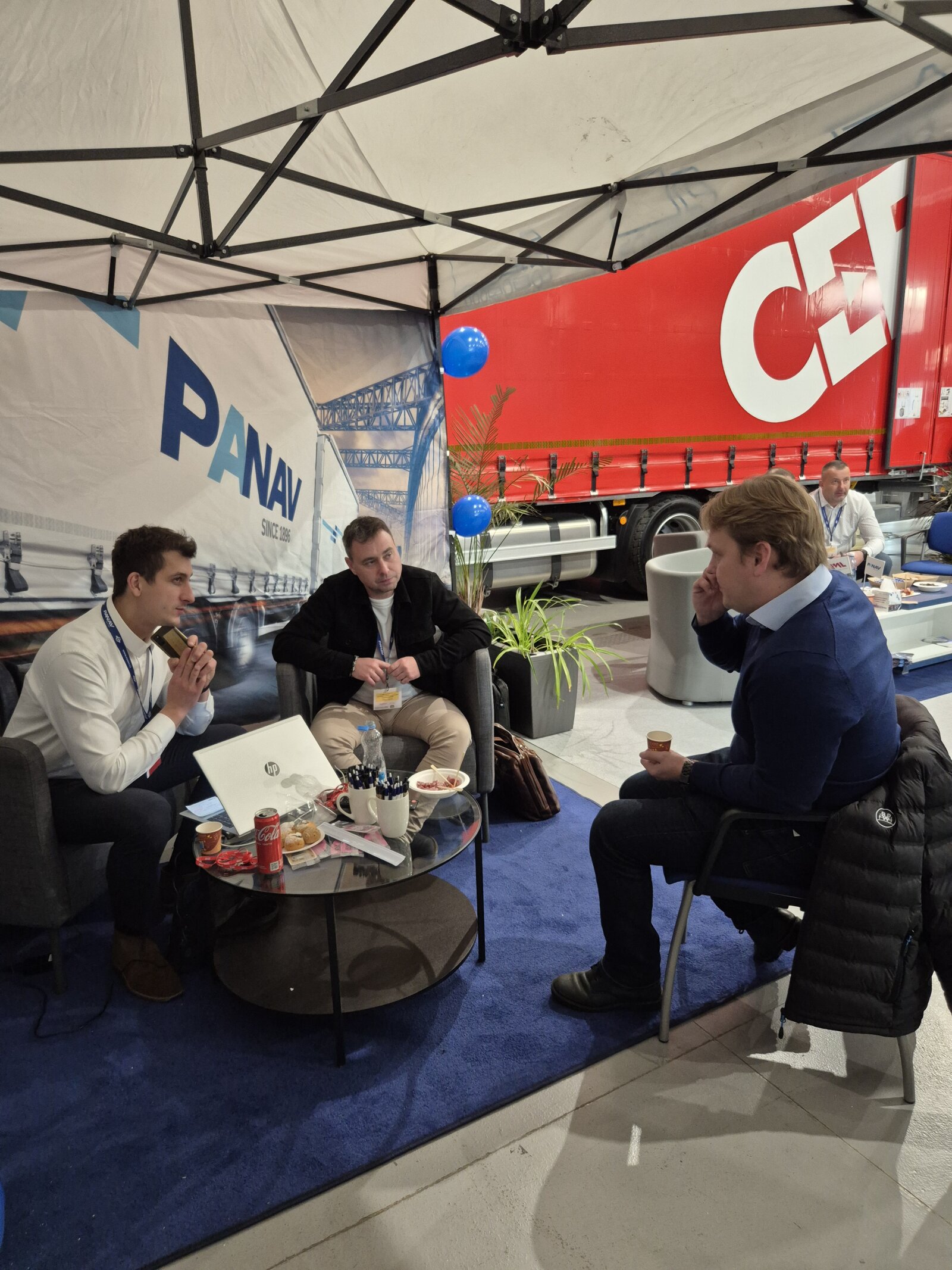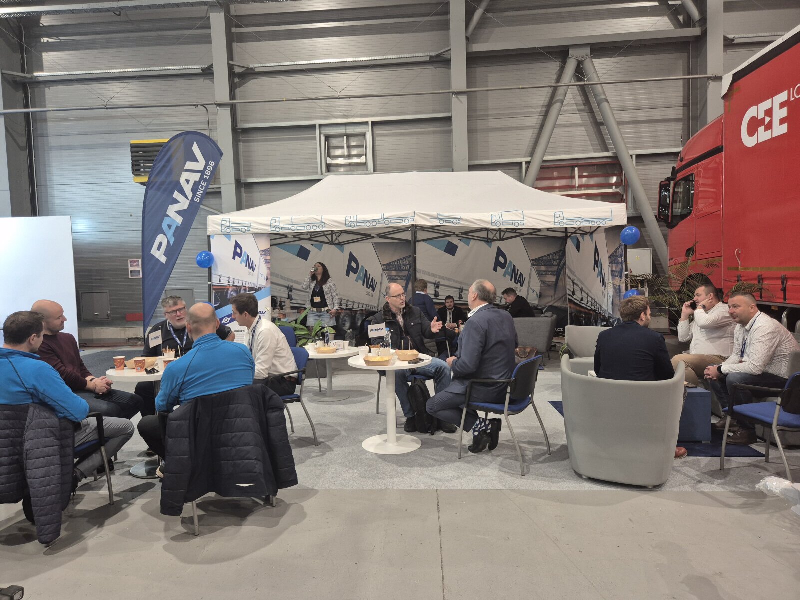 Příchozím jsme na našem stánku ukázali valníkovou velkoobjemovou soupravu ANV+TVK18M, tandemový sklápěcí přívěs TS318H, plošinový tandemový přívěs TP018L a kontejnerový přívěs PVC24M_ALOIS.